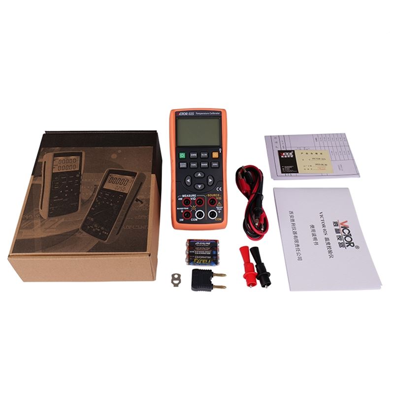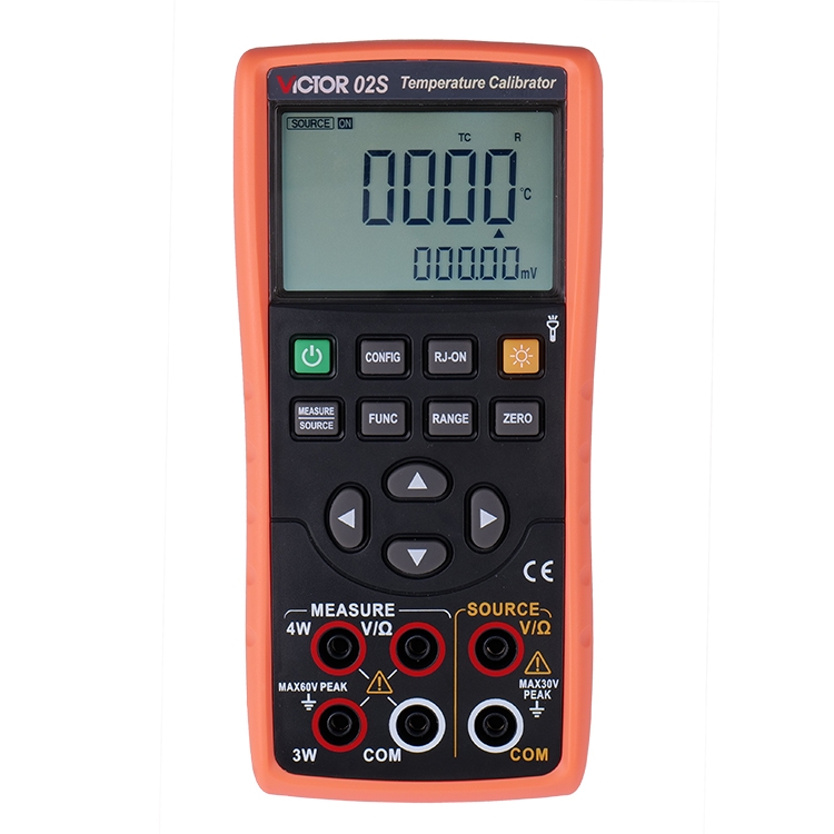 VICTOR 02S温度校验仪(以下简称校验仪)是一个由电池供电,能测量和输出电参数和物理参数的手持便携式仪器。可用于测量直流电压、电阻、热电偶、热电阻;模拟输出直流电压、电阻、热电偶、热电阻。
